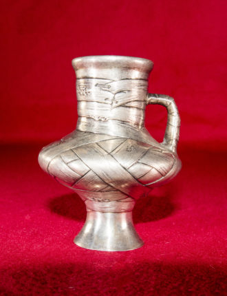 Rara piccola brocca in argento, finemente sbalzata e rifinita a cesello, con un decoro trompel'0eil, a ricreare la copertura in strisce di legno di betulla. Condizioni di conservazione ottime. Mosca, Russia, periodo fine XIX secolo. -